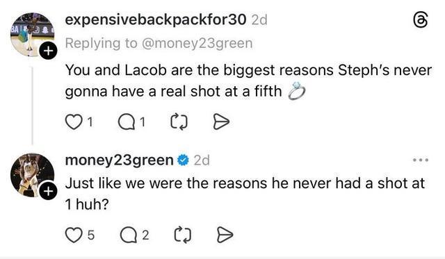 对此,追梦回应了这位球迷:“就像我们让他一直没机会拿到总冠军一样,是吧?”