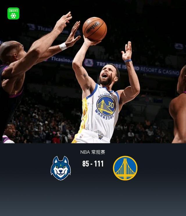 第四节,开节森林狼迪文琴佐连续得分,勇士库里持续给予回应,随后森林狼爱德华兹再度站出来得分,但勇士仍能回应维持20分上下领先,后半节森林狼直接缴械投降,双方收兵换下主力进入练兵时间,全场结束,勇士111-85森林狼。