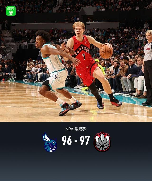 第四节黄蜂塞克斯顿拿下8分,猛龙RJ-巴雷特拿下16分,最终黄蜂96-97不敌猛龙