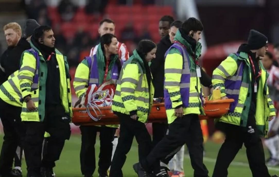斯托克队医迅速冲入场内进行处理,不久后,担架被抬出,穆巴马在球迷掌声中离场送医。记者Sanny Rudravajhala在社交平台上写道:“曼城租借球员穆巴马在斯托克遭遇严重伤病。女王公园巡游者的邓恩动作非常危险。穆巴马痛苦难耐,被抬上担架接受紧急治疗。”