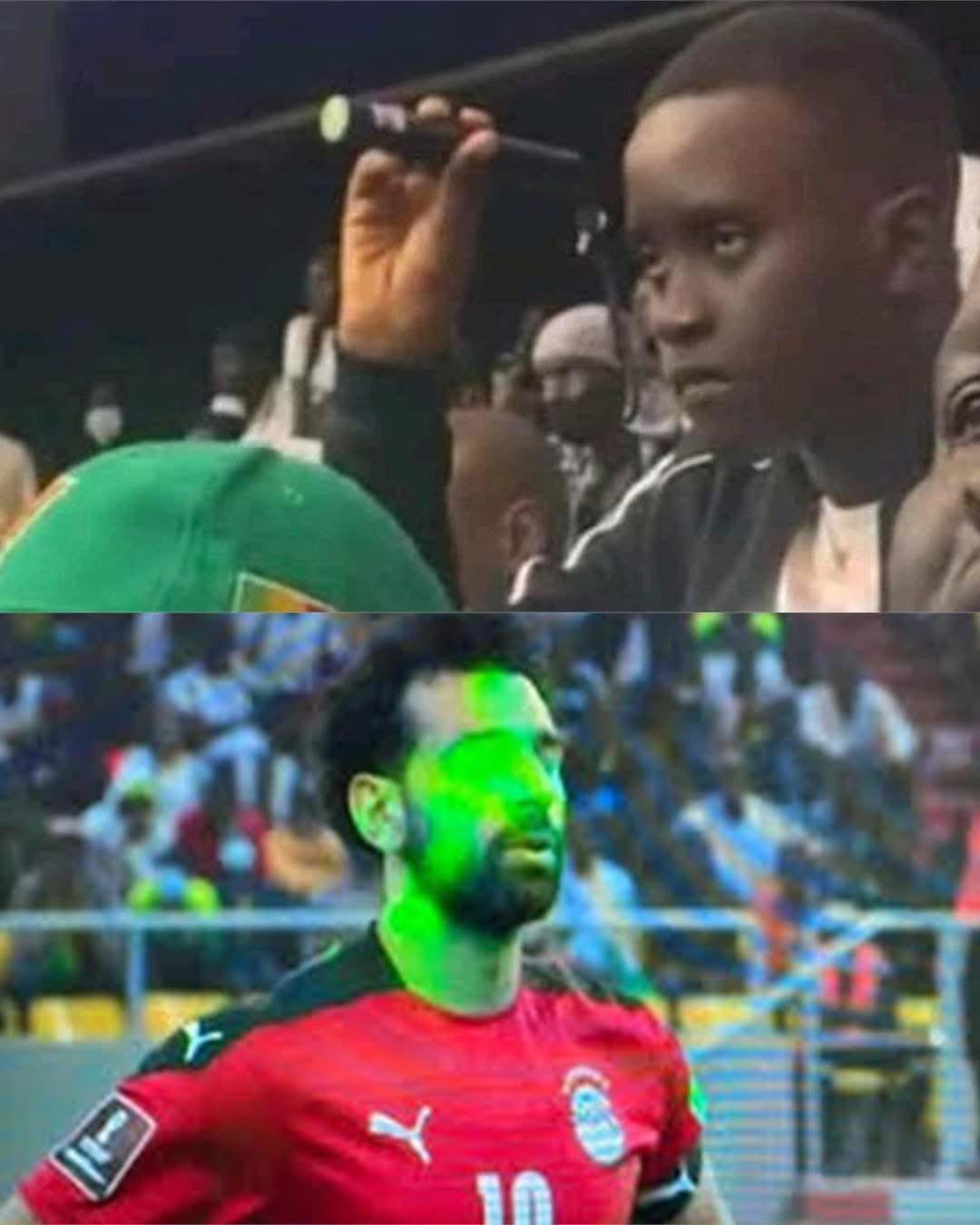 在萨拉赫主罚点球前,看台上的球迷用激光笔干扰萨拉赫,利物浦前锋的脸上和身上是一片绿光,最终萨拉赫将球踢飞,而埃及也被塞内加尔淘汰,无缘2022年世界杯。