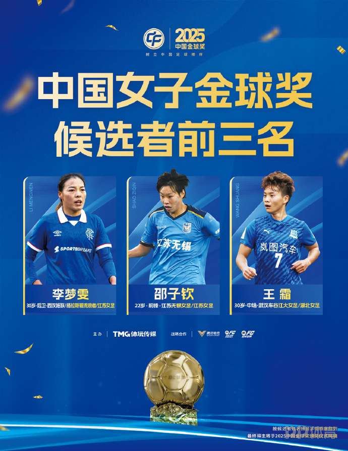 李梦雯、邵子钦和王霜将争夺中国女子金球奖