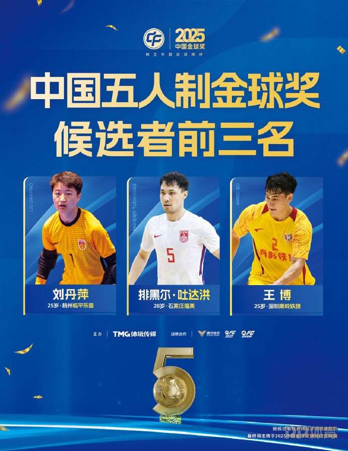 五人制金球奖前三是刘丹萍、排黑尔·吐达洪与王博