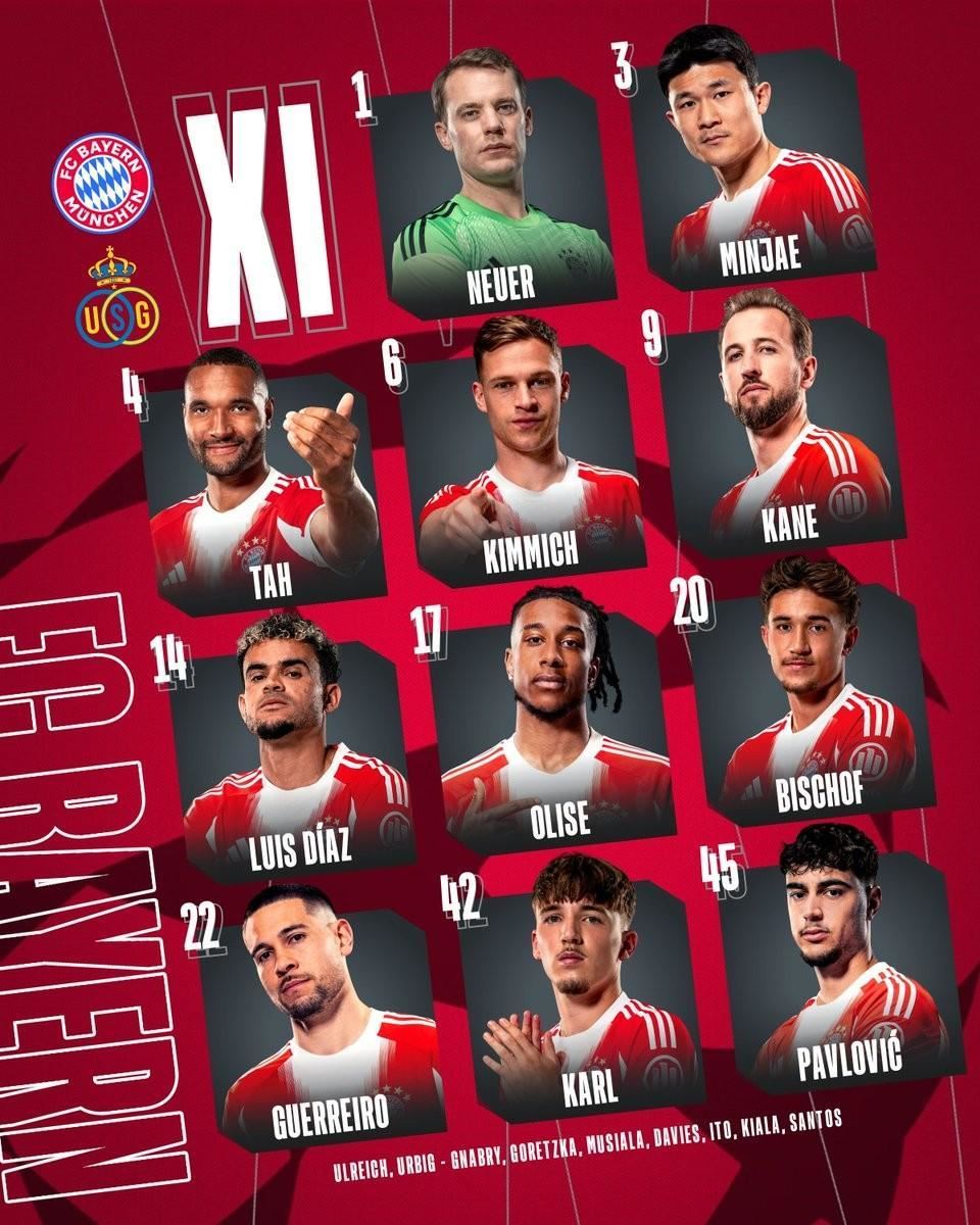 拜仁vs圣吉罗斯联合:凯恩领衔,卡尔、金玟哉、格雷罗首发