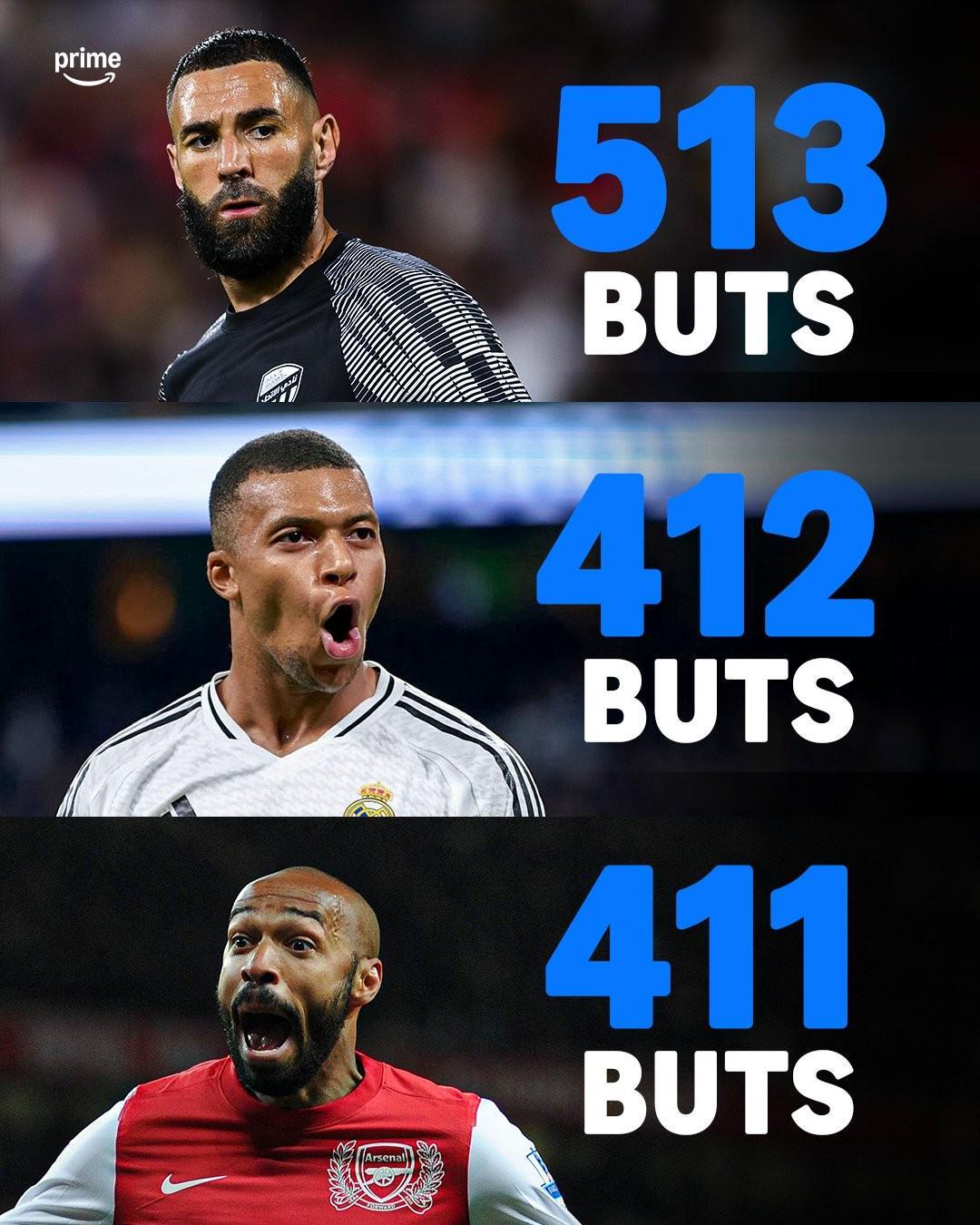 目前,法国职业足球历史上的第一射手是本泽马,他以513粒进球高居榜首。
