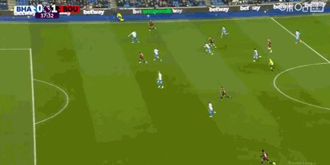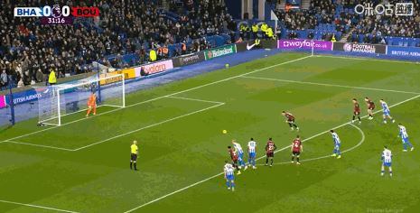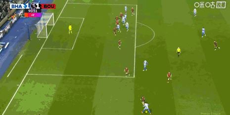 第90分钟,范黑克助攻,科斯图拉斯倒钩绝平,布莱顿1-1