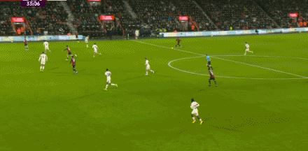 第33分钟,希尔送出直塞,希门尼斯推射穿裆入网!伯恩茅斯2-0利物浦