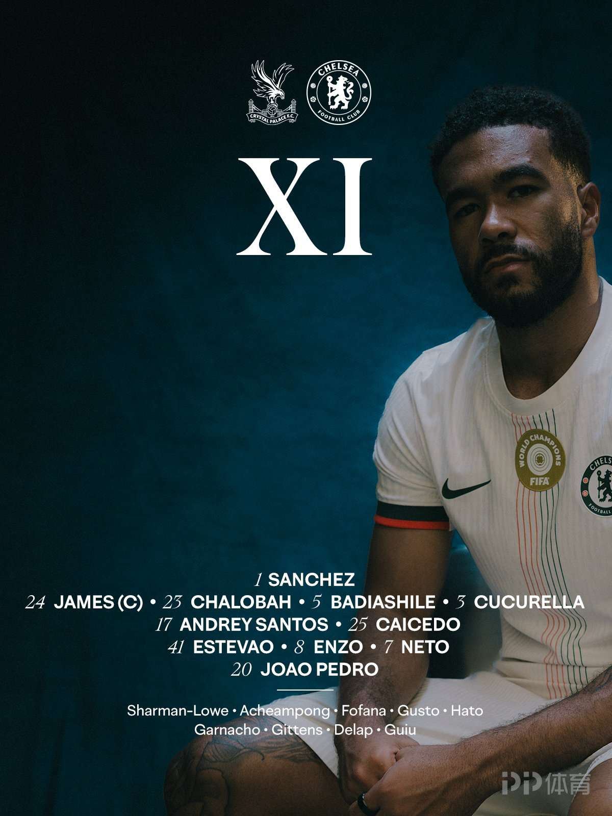 切尔西客战水晶宫:埃斯特旺领衔,佩德罗、詹姆斯出战