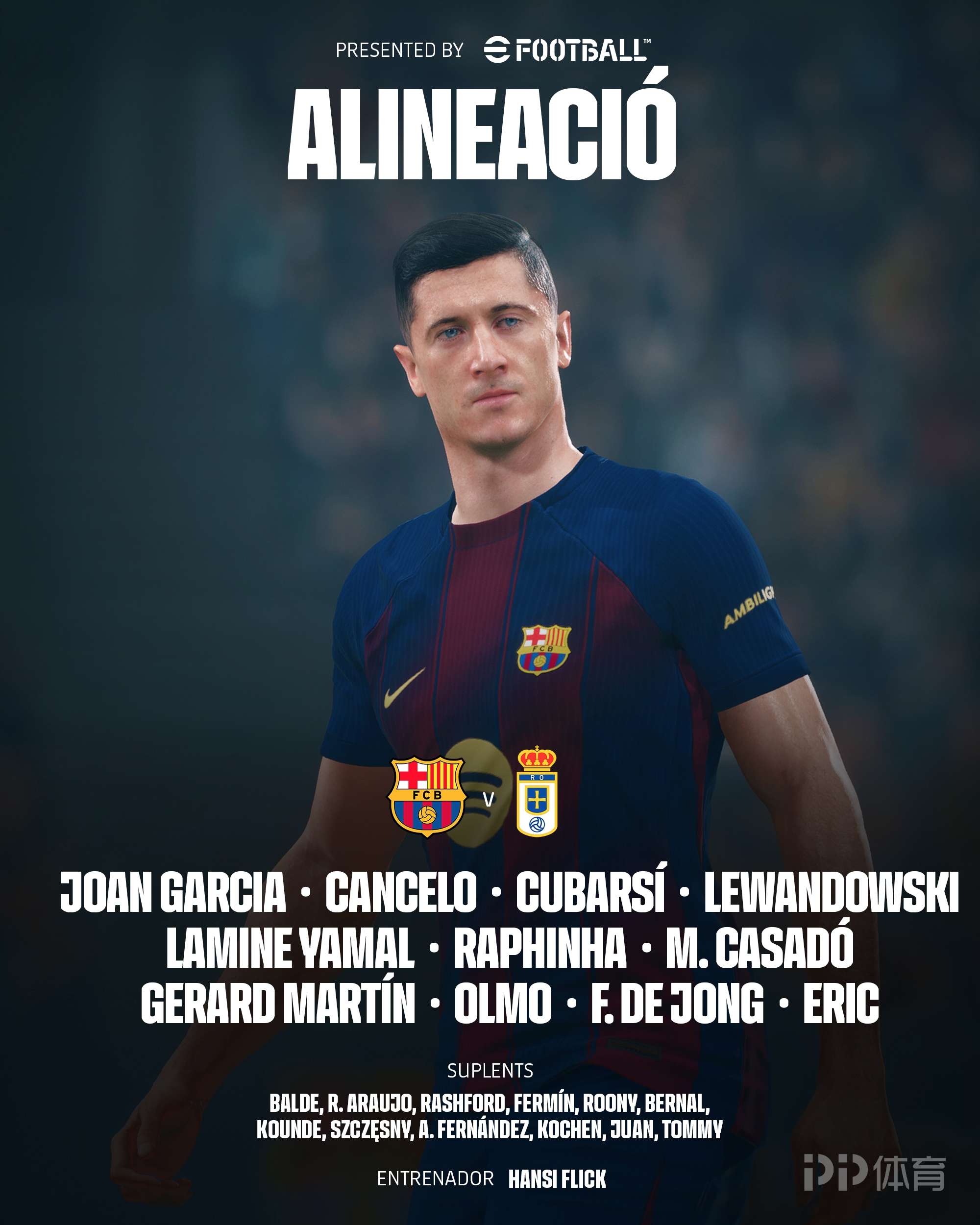 巴萨vs皇家奥维耶多:亚马尔、拉菲尼亚先发,坎塞洛出战