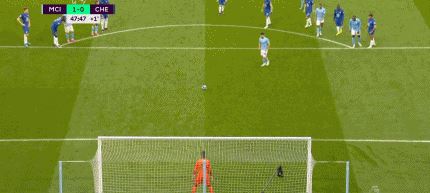 ……而且这一球踢得有些靠门迪的右侧,而不是朝向球门中间飞去。