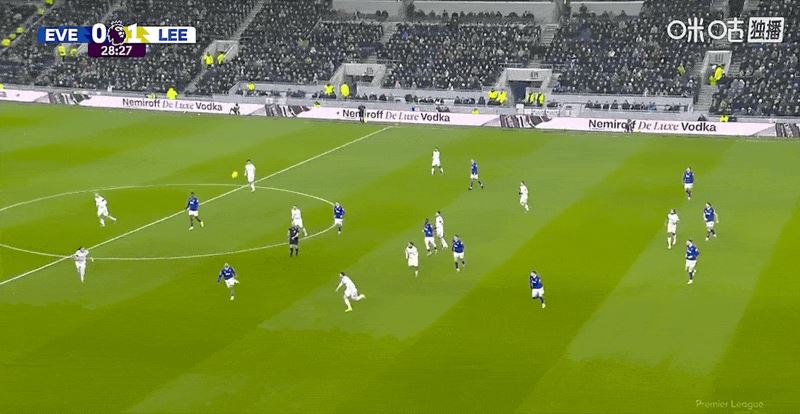 第28分钟,詹姆斯-贾斯廷禁区推射破门,利兹联1-0埃弗顿