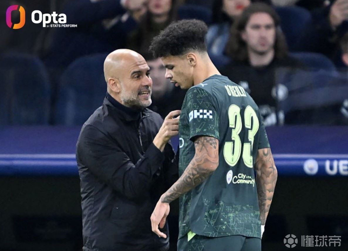 25岁140天,曼城本赛季欧冠首发平均年龄队史最低