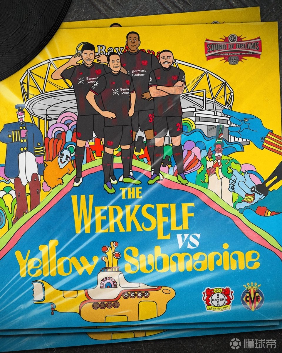 英超新闻北京时间1月29日凌晨4点,勒沃库森将在欧冠联赛阶段第8轮主场迎战“黄色潜水艇”比利亚雷亚尔。赛前,勒沃库森发布了一张趣味海报,致敬了披头士的经典曲目《黄色潜水艇》封面。