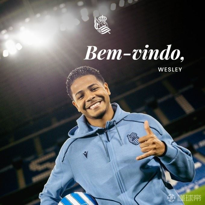 韦斯利-特谢拉(2005年生于巴西圣保罗)是一名巴西新星,出道于科林蒂安青训梯队。2023年,年仅18岁的他升入科林蒂安一线队,在两年多的时间里出战84场比赛;此后他转会加盟利雅得胜利,彼时沙特豪门为签下这位巴西前锋支付了1800万欧元转会费。韦斯利是一名能力出众、身体素质出色的边锋,可胜任左右两路。他曾入选巴西各年龄段青年国家队,其过人的天赋与战术多面性,将为皇家社会的进攻端注入全新活力。欢迎加盟,韦斯利。