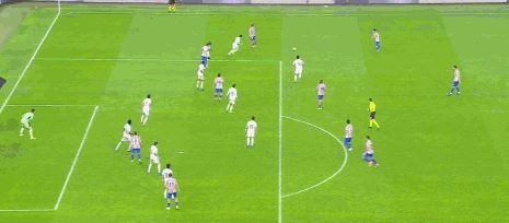 第20分钟,马竞直塞,阿尔瓦雷斯最后在吕迪格干扰下没能射门