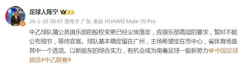 媒体人:广州蒲公英股权变更尘埃落定,球队基本确定留在广州
