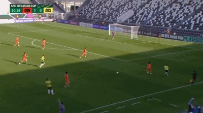 第42分钟,国足首开记录!左路定位球机会开到禁区防守球员解围不远,点球点附近彭啸混战中抽射破门,U23国足1-0澳大利亚。