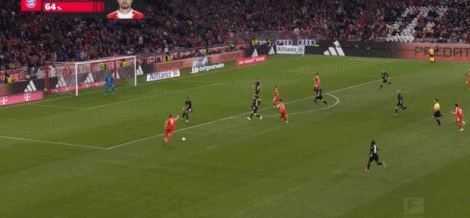 第68分钟,格雷茨卡快开任意球,凯恩助攻格雷罗破门,拜仁5-1