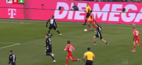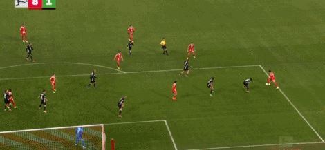 第89分钟,约纳坦-塔直塞,格雷茨卡铲射破门,拜仁8-1狼堡